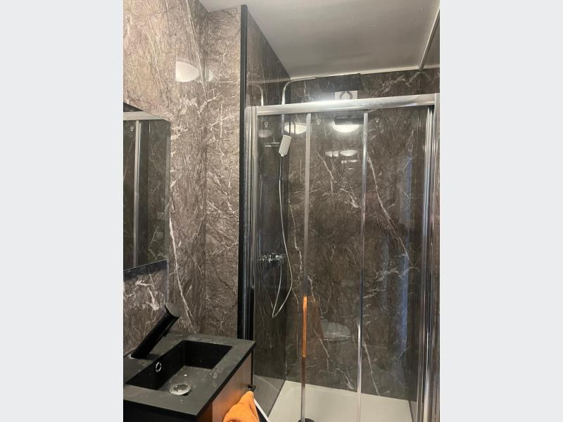 une entrée, une salle de douche et wc refait à neuf, une cuisine ouverte sur le séjour.